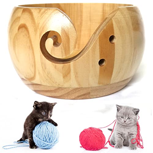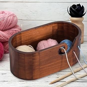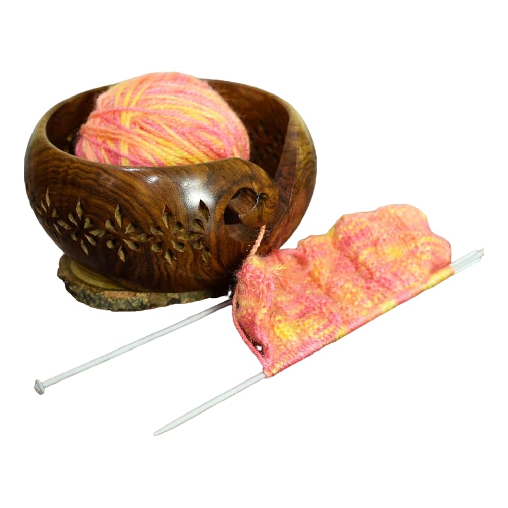 Handgefertigte Garnschale Aus Mangoholz | Wollknäuelhalter Mit Wirbeldesign | 17,8 X 7,6 Cm | Ideal Für Strickfans