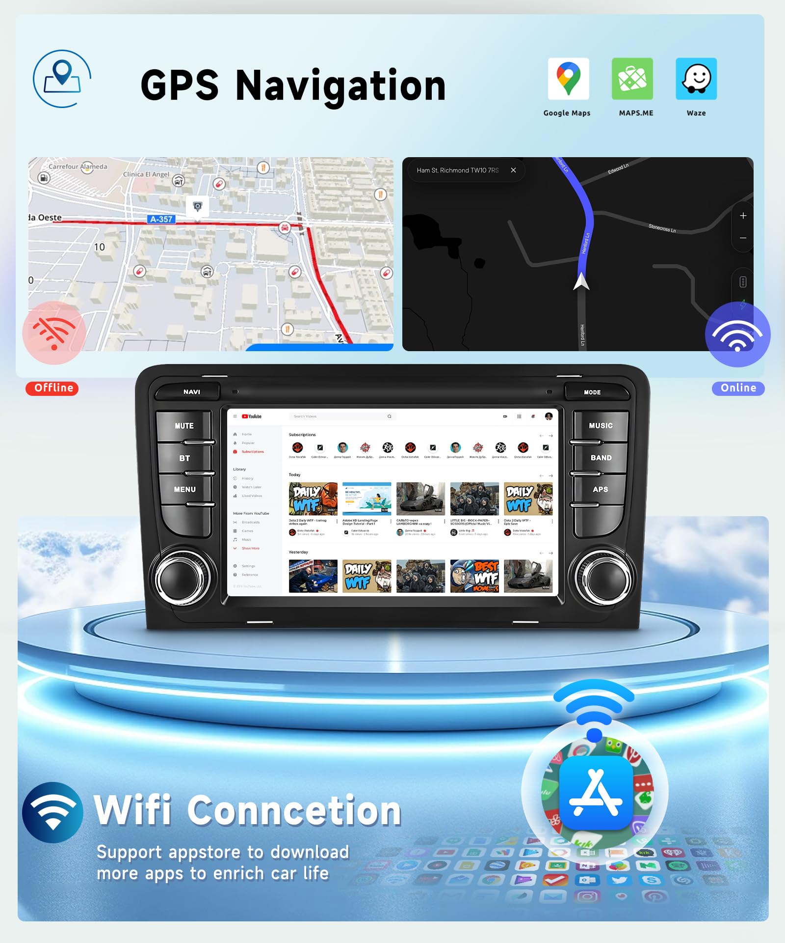 Willst du dein Audi A3, S3 oder RS3 mit einem modernen Autoradio aufrüsten? Dieses 9-Zoll Android Radio mit Wireless Carplay und Android Auto ist genau das Richtige! Mit 4 GB RAM und 64 GB Speicher hast du genug Power für Navigation, Musik und Apps. Der kapazitive Incell-Touchscreen ist super scharf und reagiert sofort auf Berührungen. Du kannst kabellos Carplay oder Android Auto nutzen - einfach mit dem Smartphone verbinden und loslegen! Integriertes GPS, WLAN und Bluetooth sorgen für maximale Connectivity. Auch eine AHD Rückfahrkamera und Lenkradsteuerung werden unterstützt - alles für mehr Komfort und Sicherheit. Einfach installieren und von den vielen Features profitieren: Spiegeln des Smartphone-Bildschirms, FM-Radio, EQ-Soundeffekte und vieles mehr. Perfekt für alle, die ihr Fahrzeug technisch auf dem neuesten Stand halten wollen. Also, worauf wartest du? Hol dir dieses vielseitige Radio und mach jede Fahrt zum Erlebnis!