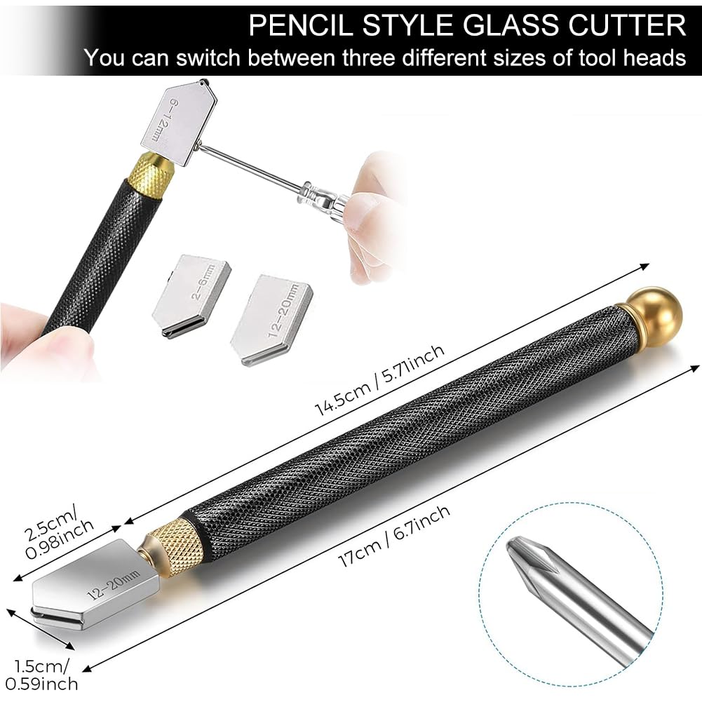 Für alle Heimwerker und Profis! Dieser Glasschneider macht das Schneiden von Glas und Fliesen zum Kinderspiel. Mit drei austauschbaren Schneidköpfen für Materialstärken von 2-20mm bist du für jedes Projekt gerüstet. Das automatische Ölsystem sorgt für saubere Schnitte ohne Risse. Inklusive: • 3 Schneidköpfe (2-6mm, 6-12mm, 12-20mm) • Schneidöl • Werkzeuge für Wechsel • Ergonomischer Griff Perfekt für: • Spiegel schneiden • Fliesen bearbeiten • Mosaik-Arbeiten • DIY Projekte Einfach zu bedienen - auch für Einsteiger geeignet. Mit diesem Profi-Werkzeug meisterst du jedes Glas-Projekt!