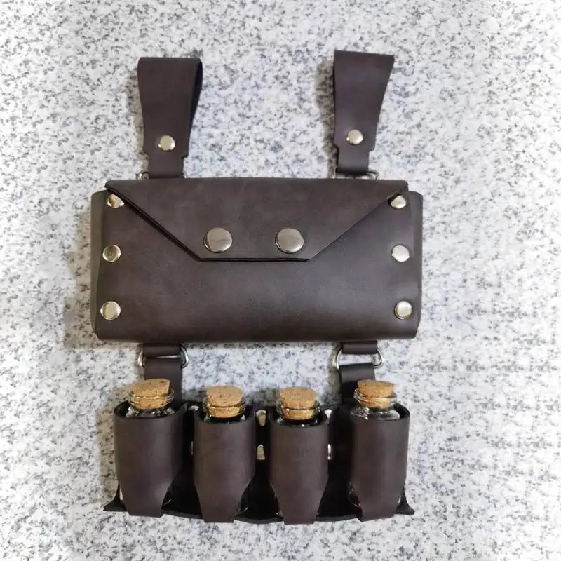 HiiFeuer Mittelalterlicher Alchemie Gürtel - Mit 4 Kork Fläschchen Für Fantasy & LARP