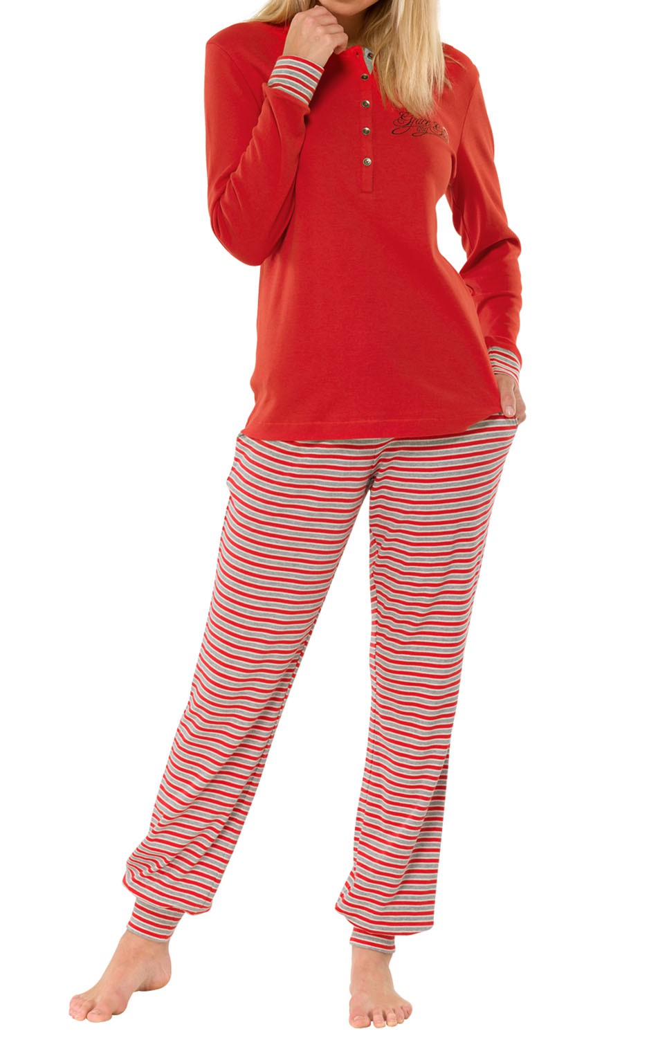 Schiesser Damen Schlafanzugjacke - Mix & Relax Mit Satinband