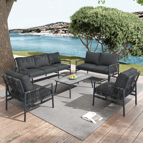 Perfekt für deine Terrasse! Dieses Miyemo Gartenmöbel Set bringt pure Entspannung in deinen Garten. Das Sofa mit dem passenden Couchtisch sieht nicht nur super stylisch aus, sondern ist auch extrem langlebig. Der Tisch besteht aus verzinktem Stahl mit schicker Holzoptik - absolut wasserfest und rostfrei. Die Sitzflächen sind aus hochwertigem Olefin-Gewebe, das nicht so schnell ausbleicht und super UV-beständig ist. Die geflochtene Seilarbeit gibt dem ganzen Set diesen besonderen Charme. Einziger Hinweis: Das Set kommt in zwei Paketen, die vielleicht nicht gleichzeitig ankommen. Aber das Warten lohnt sich definitiv! Perfekt für Balkon, Terrasse oder Garten - damit wird dein Outdoor-Bereich zum echten Wohlfühlort.