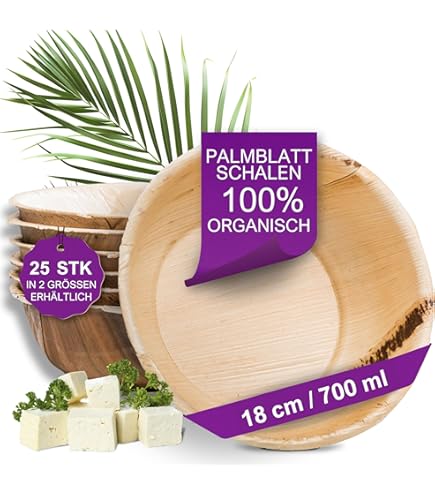 Endlich Einweggeschirr, das der Umwelt nicht schadet! Diese FOOGO Schalen werden aus natürlichen Palmblättern der Areca-Palme gemacht - komplett ohne Chemie. Sie sind super stabil, halten auch flüssige und ölige Speisen problemlos aus und weichen nicht durch. Perfekt für Geburtstage, Grillpartys, Picknicks oder Firmenevents. Einfach nach Gebrauch in den Biomüll - sie sind 100% kompostierbar! Das Beste: Jede Schale hat ihre eigene natürliche Maserung, jedes Stück ist ein Unikat. Übrigens: FOOGO ist klimaneutral und unterstützt grüne Projekte weltweit. Mach deine nächste Party nachhaltig!