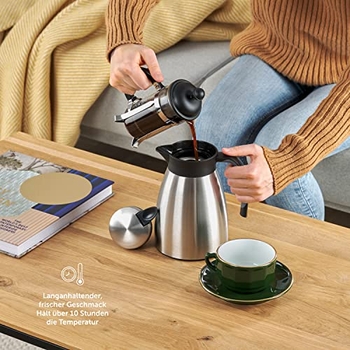 Stell dir vor, du brühst dir einen leckeren Tee oder Kaffee und er bleibt stundenlang heiß – genau das schafft diese Thermo-Teekanne! Mit 800 ml Fassungsvermögen ist sie ideal für dich alleine oder für kleine Runden mit Freunden. Die doppelwandige Isolierung aus Edelstahl sorgt dafür, dass die Temperatur deines Getränks super lange erhalten bleibt. Das hübsche Blumenmuster macht sie zu einem echten Hingucker in deiner Küche. Und keine Sorge: Der Edelstahl ist rostfrei und super langlebig. Egal ob du grünen Tee, Kräutertee oder Filterkaffee aufbrühst – die Kanne filtert zuverlässig und gießt dabei tropffrei aus. Sie ist nicht nur praktisch, sondern auch super stylisch! Perfekt für gemütliche Abende, Frühstück mit der Familie oder wenn mal Besuch kommt. Einfach befüllen, aufgießen und genießen – dein Getränk bleibt warm, solange du magst. Waschbar und pflegeleicht – so muss das sein!