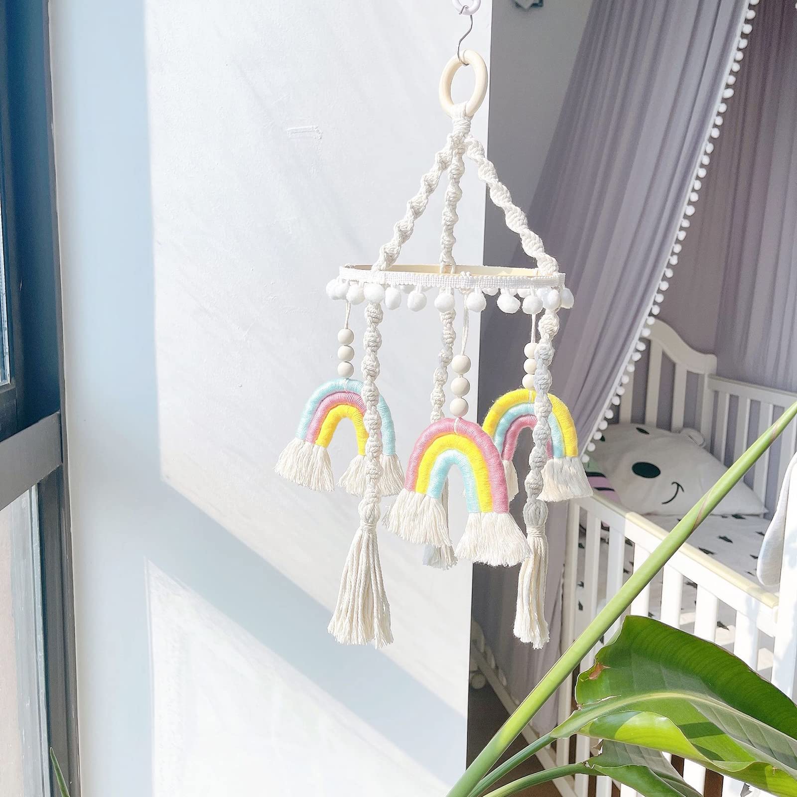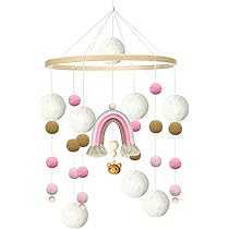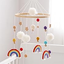 Yuragim Baby Mobile Regenbogen - Holz Windspiel Mit Filzbällen & Glöckchen