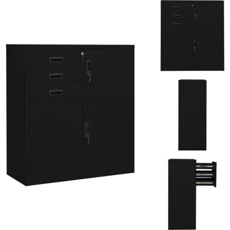 Rollcontainer Aktenschrank Schwarz - Mobiler Büroschrank 45x38x54cm Mit Schublade