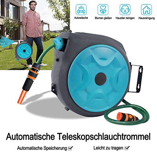 Schlauchtrommel Mit 35m Schlauch - Mobiler Gartenschlauch Aufroller Mit 10 Düsen