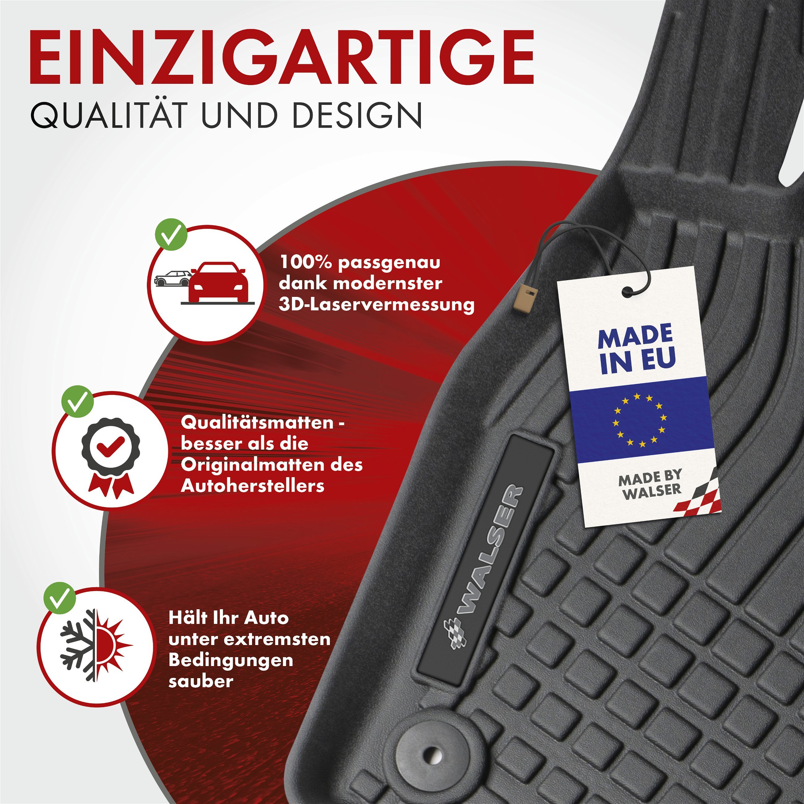 WALSER XTR Gummimatten Für Tesla Model 3 - 100% Passgenaue Allwetter-Fußmatten