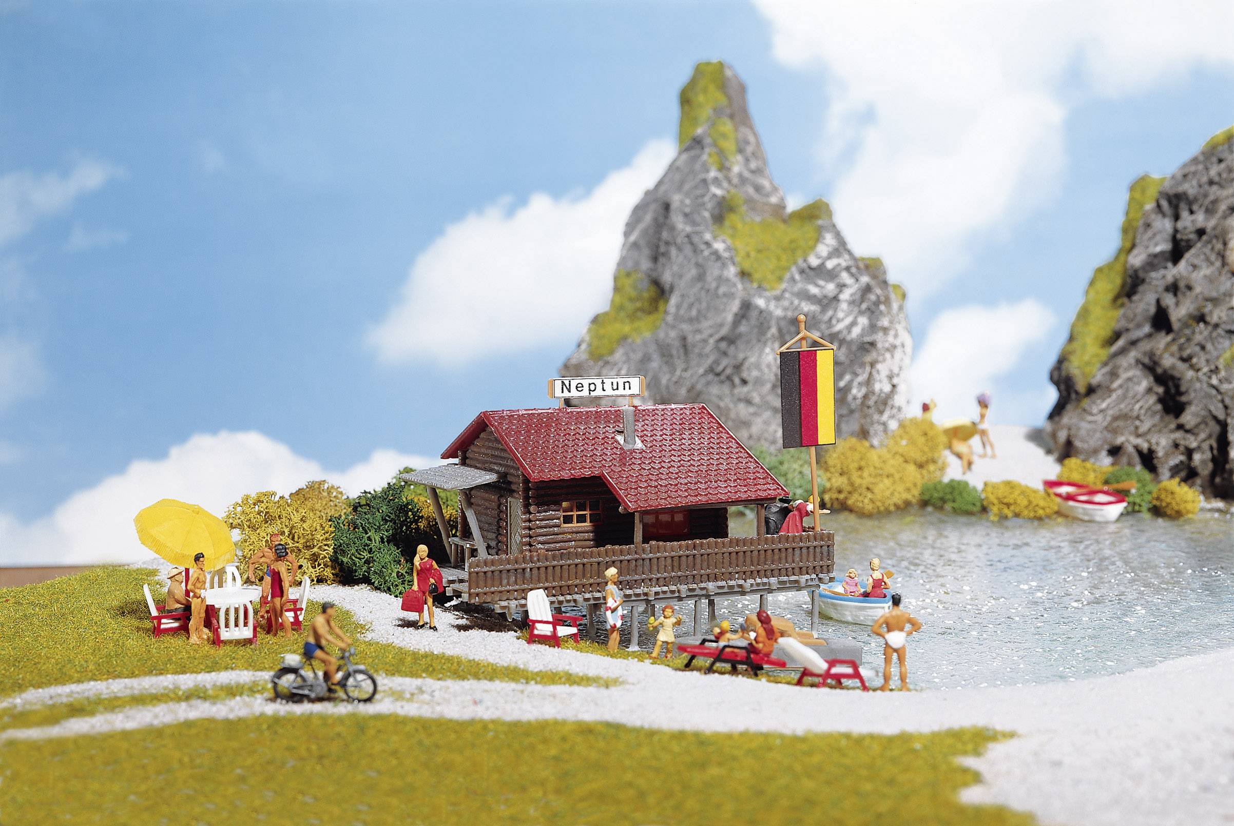 Hey du Modellbau-Fan! Dieses FALLER Bootshaus ist einfach der Hammer für deine Anlage. Stell dir vor: Ein komplettes Bootshaus mit echtem Boot - was will man mehr? Perfekt für jeden See oder Fluss in deiner Modelllandschaft. Der Bausatz kommt mit 30 Einzelteilen in 4 verschiedenen Farben, plus Deko und ner verständlichen Bauanleitung. Kein Stress beim Zusammenbau - auch für Einsteiger super geeignet! Aber Achtung: Nicht für Kinder unter 14 Jahren, wegen den kleinen Teilen. Das fertige Bootshaus sieht so realistisch aus, deine Besucher werden staunen! Egal ob für deine Eisenbahnanlage oder als Deko - damit holst du dir ein Stück Idylle nach Hause. Einfach aufbauen, Boot ins Wasser setzen und den Anblick genießen. Perfekt für alle, die detailverliebt sind und was Besonderes suchen!