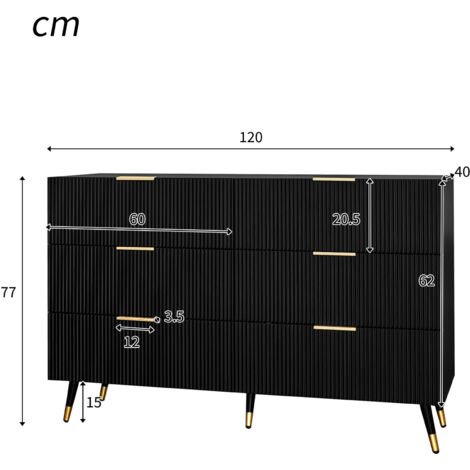 KecDuey Sideboard Schwarz - Moderne Kommode Mit Goldenen Griffen & Kippschutz