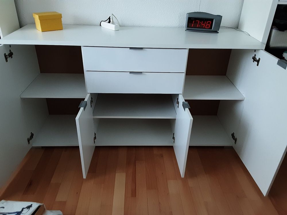 Das KecDuey Sideboard ist nicht nur schick, sondern auch super praktisch! In schwarz mit diesen goldenen Griffen und wellenförmigen Türen macht sich das Teil in jedem Wohnzimmer richtig gut. Mit 152x40x75cm und vier Ablagefächern hast du genug Platz für alles mögliche - von Geschirr über Bücher bis zu Kleinkram. Das besondere? Der Kippschutz! Damit kannst du den Schrank sicher an der Wand befestigen und musst dir keine Sorgen machen dass er umkippt. Aus stabilem MDF und mit robusten Metallfüßen ist der echt langlebig. Achtung: Wird in zwei Paketen geliefert die vielleicht nicht gleichzeitig ankommen. Aber das Zusammenbauen dauert nur ca 20 Minuten - dann steht der moderne Look in deinem Zuhause!