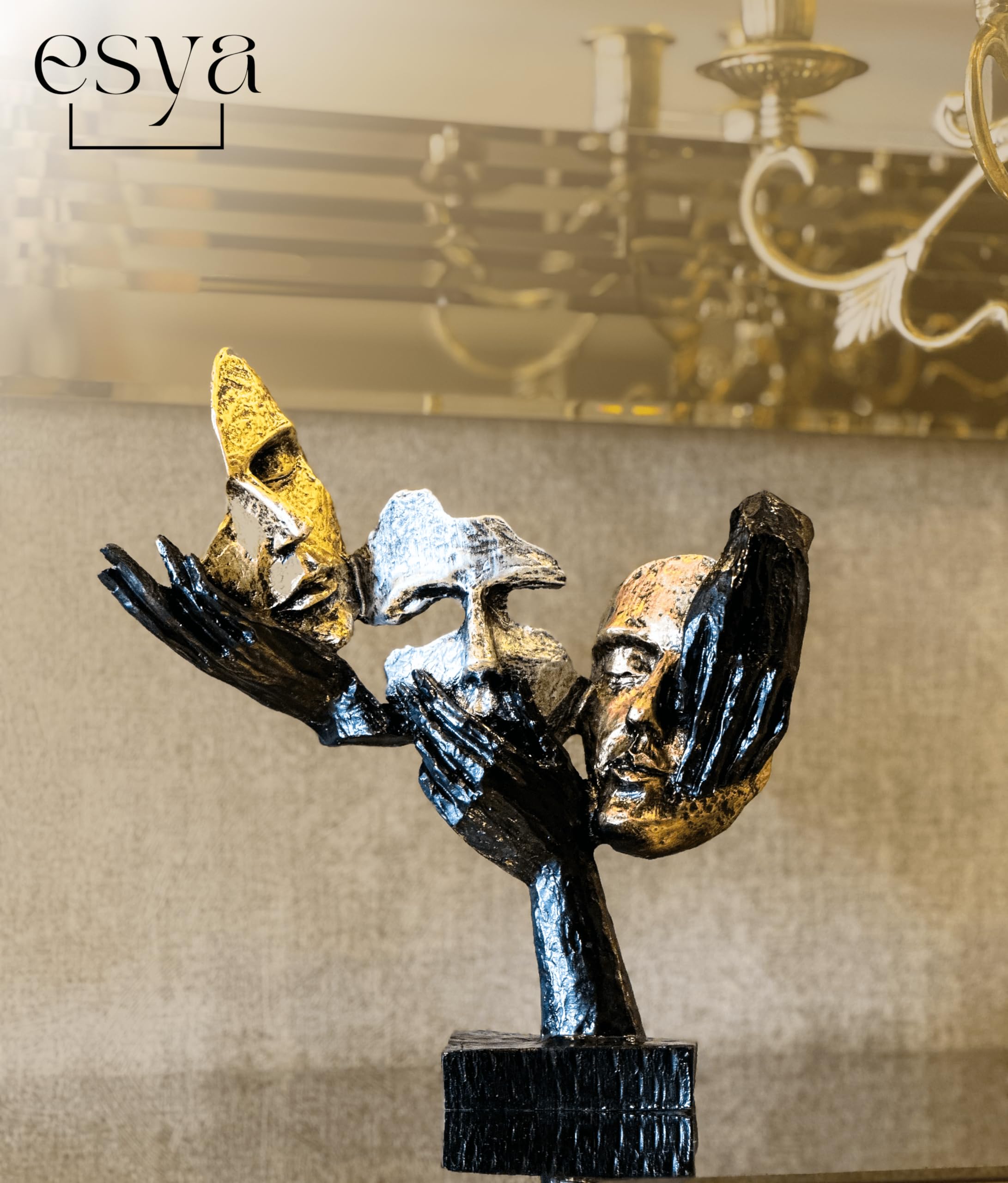 Wow, diese handgemachte Gesichtsbüste ist echt ein Hingucker! Die silberne Skulptur aus Kunststein gibt jedem Raum sofort eine künstlerische Note. Mit 50 cm Höhe und 20 cm Breite passt sie perfekt auf Sideboards, Regale oder als Eyecatcher im Wohnzimmer. Das coole ist: Sie ist nicht nur für innen geeignet, sondern hält auch im Garten problemlos stand - wetterfest und pflegeleicht! Einfach mal mit nem feuchten Tuch abwischen und sie sieht aus wie neu. Die detailreichen Gesichtszüge sind richtig kunstvoll gearbeitet und werden sicher Gesprächsstoff bei deinen Gästen provozieren. Ob im Home-Office, Schlafzimmer oder als besondere Deko im Flur - dieses Unikat macht einfach überall was her. Sieht besonders stylisch aus zwischen Pflanzen oder als Kontrast zu modernen Möbeln. Ein Must-Have für alle, die ihrer Einrichtung eine persönliche Note verleihen wollen!