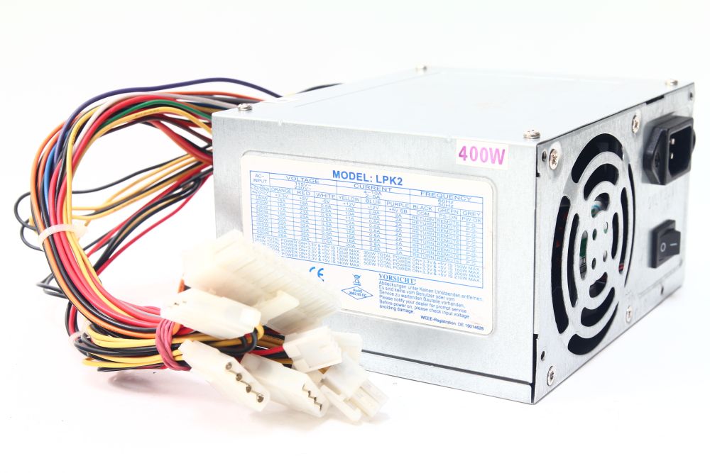 Anschlüsse: 24P Mainboard, 8P CPU, 2x SATA, 2x 8P Grafikkarte, 1x IDE. Aktiv gekühlt mit leisen Lüfter - ausgewogen zwischen Leistung und Geräuschentwicklung.