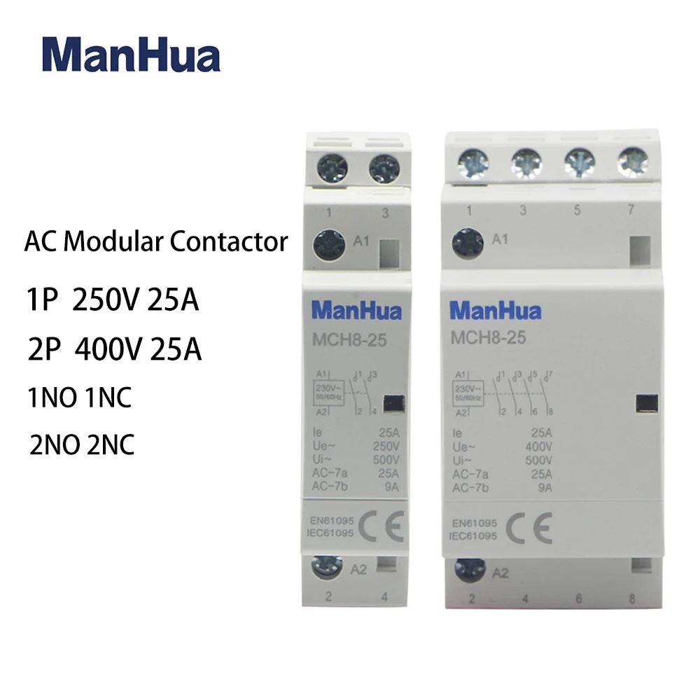 MCH8-25M Modularkontaktor Mit Manuell Bedienbarem Schalter - 2-polig, 25A, 220V/230V - Perfekt Für Haushaltsstromkreise