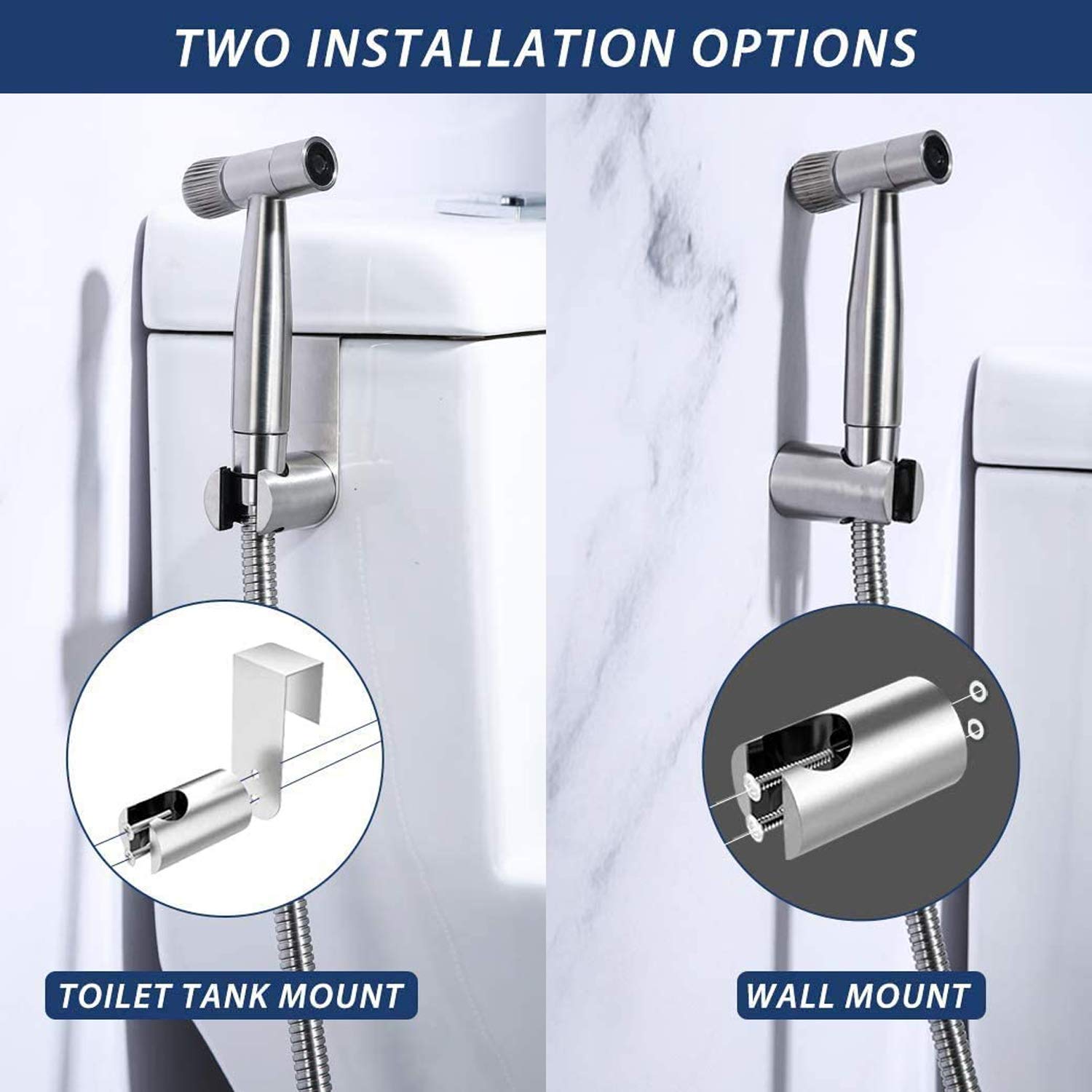 Die Qualität überzeugt: Hochwertiger Kunststoff, Edelstahl-Schlauch und robuste Anschlüsse. Hält jahrelang und sieht dabei noch gut aus! Die Halterung kann entweder an der Wand montiert oder praktisch am Toilettentank aufgehängt werden.