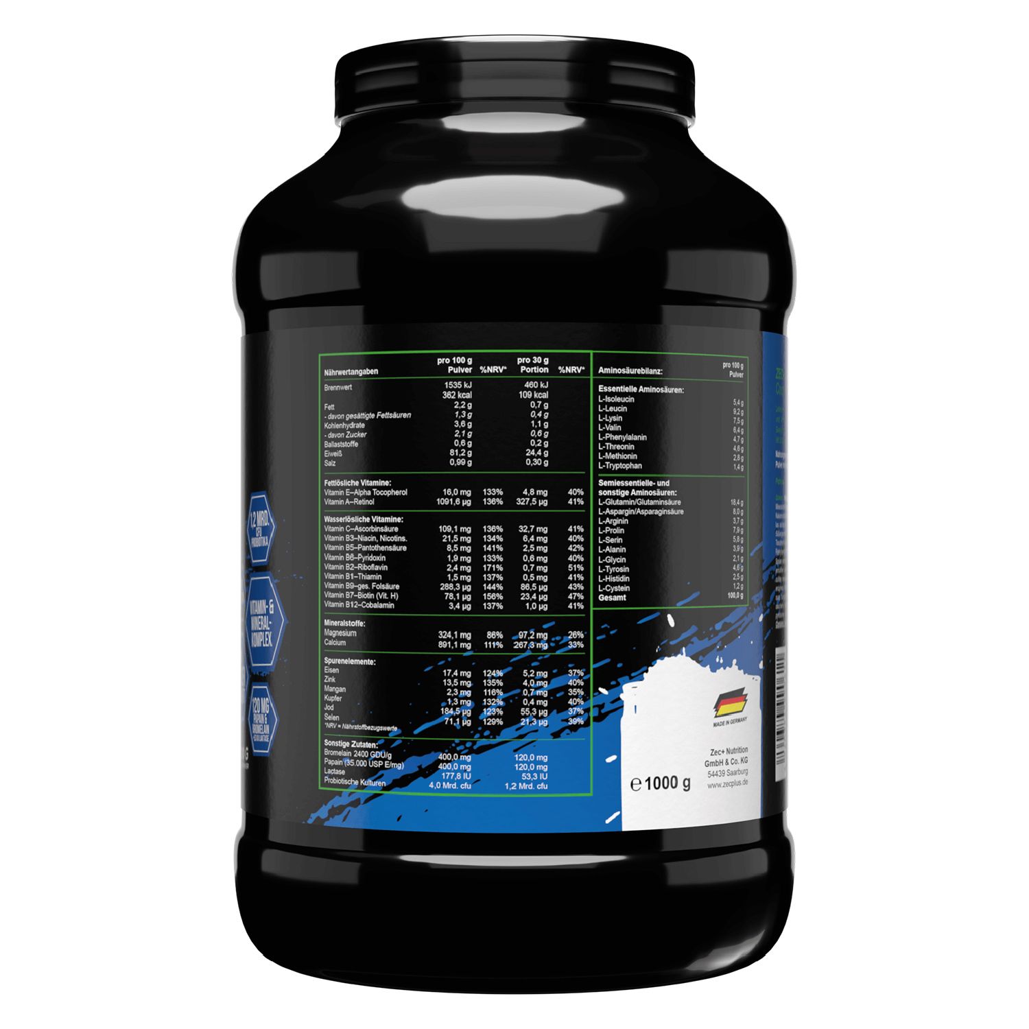 Boah, dieses Whey Protein ist der absolute Gamechanger für dein Training! Das Zec+ Clean Concentrate liefert dir 70-80% reines Molkenprotein - perfekt für nach dem Sport. Der Kirsch-Banane Geschmack ist einfach mega lecker, ob mit Wasser oder Milch gemixt. Aber das Beste: Es steckt voller wichtiger Aminosäuren wie Isoleucin, Leucin und Valin, die deine Muskeln nach dem Training richtig verwöhnen. Hergestellt in Deutschland, natürlich mit voller Transparenz bei den Inhaltsstoffen. Ob Muskelaufbau, Fettverbrennung oder einfach nur eine proteinreiche Zwischenmahlzeit - dieses Pulver ist dein bester Kumpel im Fitness-Lifestyle. Und das zu einem echt fairen Preis! Übrigens: Es gibt's auch in anderen coolen Geschmacksrichtungen wie Schokolade, Vanille oder sogar Spaghetti-Eis - da ist für jeden Geschmack was dabei. Perfekt für Shaker, Smoothies oder zum Backen von Protein-Pancakes. Mit 1000g Inhalt hast du lange was davon und kannst deine Proteinversorgung sicherstellen. Egal ob Fitness-Anfänger oder Profi - dieses Whey unterstützt dich bei deinen Sportzielen!