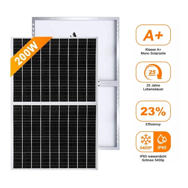 Hol dir deine eigene Energie! Dieses 200W Solarpanel mit N-Typ Technologie bringt satte 24% Wirkungsgrad - das ist richtig viel Power für dein Zuhause unterwegs. Mit IP68 Schutz hält die Anschlussdose auch bei Regen und Staub dicht. Das Panel ist ein echter Kraftprotz: Hält 2400 Pa Stößen und 5400 Pa Schneelast stand! Der Aluminiumrahmen macht es robust für jeden Einsatz. Ob auf dem Wohnmobil, Boot, Gartenhaus oder Balkon - die Montage ist super einfach dank vorgebohrter Löcher. Die leichte Bauweise erleichtert das Handling enorm. Integrierte Bypass-Dioden sorgen dafür, dass auch bei teilweiser Verschattung noch Energie fließt. Perfekt für alle, die unabhängiger sein wollen oder netzferne Orte mit Strom versorgen müssen. Mit diesem Panel machst du dich unabhängig von Steckdosen und tankst kostenlose Sonnenenergie!