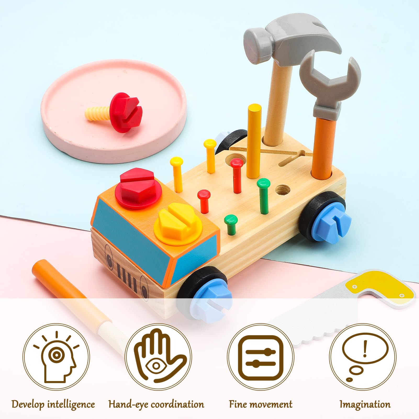 Welches Kind träumt nicht davon, wie die Großen mit Werkzeug zu hantieren? Mit diesem süßen Dino-Schraubbrett aus Holz wird's möglich! Das Set enthält 8 bunte Schrauben und 4 kindgerechte Werkzeuge, mit denen kleine Handwerker ab 3 Jahren üben können, Schrauben rein- und rauszudrehen. Das fördert nicht nur die Feinmotorik und Hand-Auge-Koordination, sondern auch die Konzentration und Problemlösungsfähigkeit. Aus ungiftigem Holz und Metall gefertigt, mit abgerundeten Ecken und glatten Oberflächen - absolut sicher für Kinderhände. Die praktische Aufbewahrungstasche macht das Spielzeug perfekt für unterwegs. Ein pädagogisch wertvolles Geschenk für Jungen und Mädchen zu Geburtstag, Weihnachten oder einfach so!