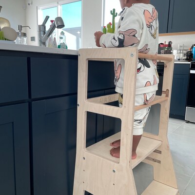 Endlich auf Augenhöhe mit Mama und Papa! Dieser stabile Montessori-Lernturm ermöglicht es deinem Kind, sicher in der Küche oder im Bad mitzuhelfen. Ab einem Jahr einsetzbar, wächst der Turm mit deinem Kind mit - dank drei verstellbarer Plattformhöhen (20, 30 und 40 cm). Die robuste Konstruktion aus hochwertigem MDF-Holz trägt bis zu 50 kg und bietet mit den Maßen 80cm Höhe, 40cm Breite und 50cm Tiefe ausreichend Standfläche. Dein Kind kann so sicher am Familientisch sitzen, beim Kochen zuschauen oder selbst aktiv werden. Der Lernturm fördert die Selbstständigkeit und macht das Lernen durch Nachahmung zum Kinderspiel. Einfach aufzubauen und ein echter Gewinn für jede Familie, die Wert auf Montessori-Pädagogik legt. Hergestellt in Polen mit Liebe zum Detail!