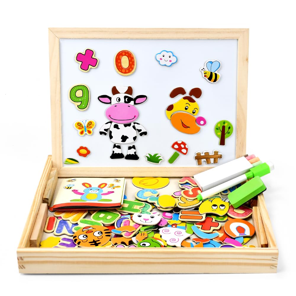Wolkenschaukel 2-in-1 Montessori Zeichentafel - Magnetisches Holzspielzeug 163 Teile Ab 2 Jahre