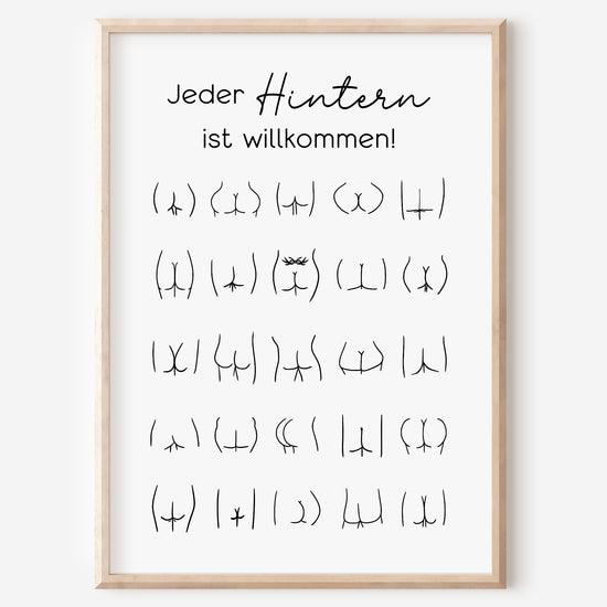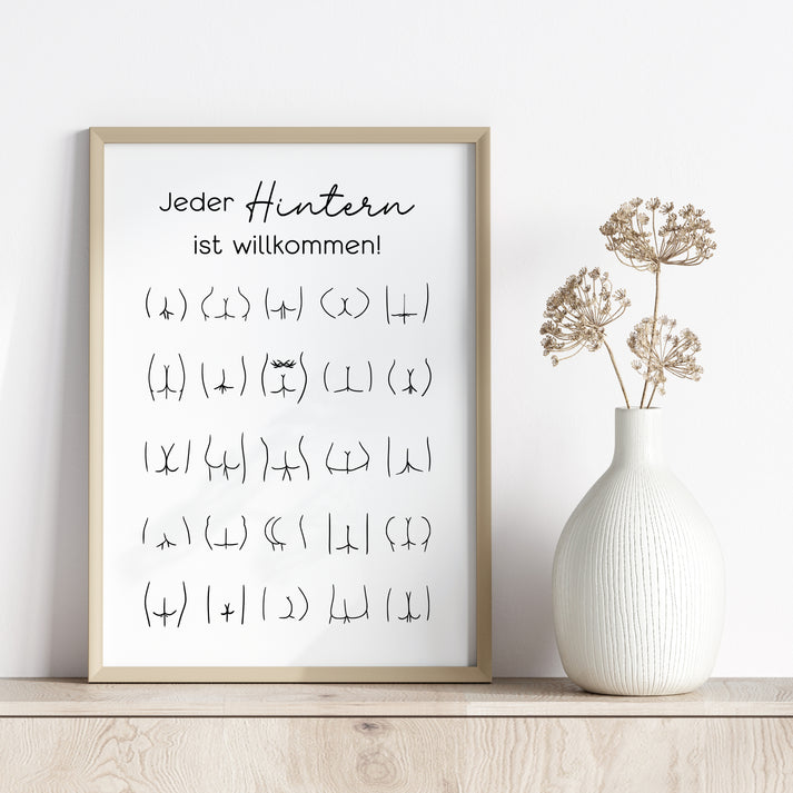 Bring Humor ins Badezimmer mit diesen frechen MoonWorks Postern! Das Motiv mit gezeichneten Popos sorgt für Schmunzler auf dem stillen Örtchen. Hochwertiger Digitaldruck auf Premium-Papier - made in Germany. Satte Farben und gestochen scharfe Details. Perfekt für Gäste-WC, Bad oder als originelles Geschenk. Erhältlich in verschiedenen Größen (DIN A5 bis A3) - mit oder ohne Rahmen. Mach dein Bad zur Comedy-Zone und überrasche deine Gäste mit diesem witzigen Hingucker!