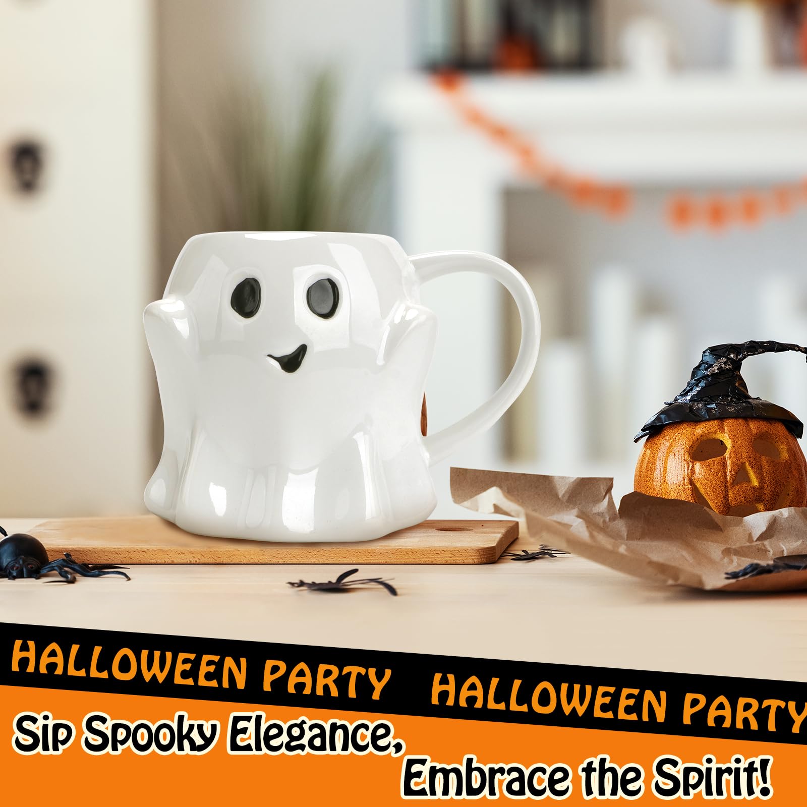 Süße Halloween Tasse Mit Geister-Motiv - 600ml Keramik Becher Mit Kürbis Deko