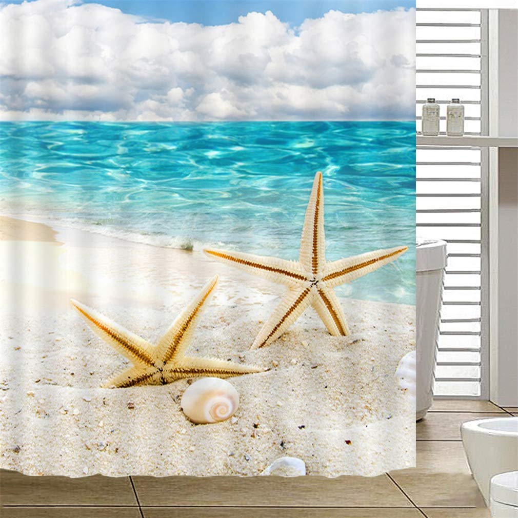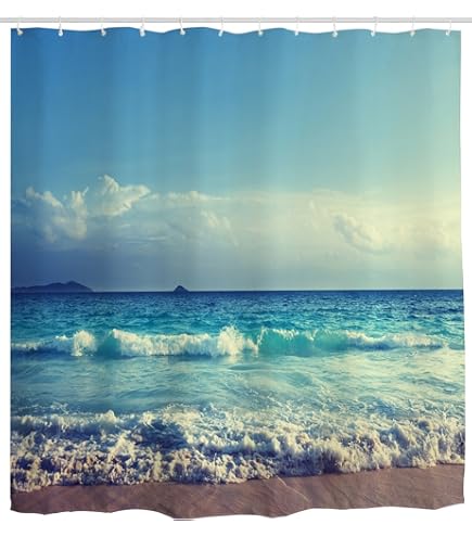 Xlabor Strand Motiv Duschvorhang 180x180cm - Wasserdicht Mit 12 Ringen
