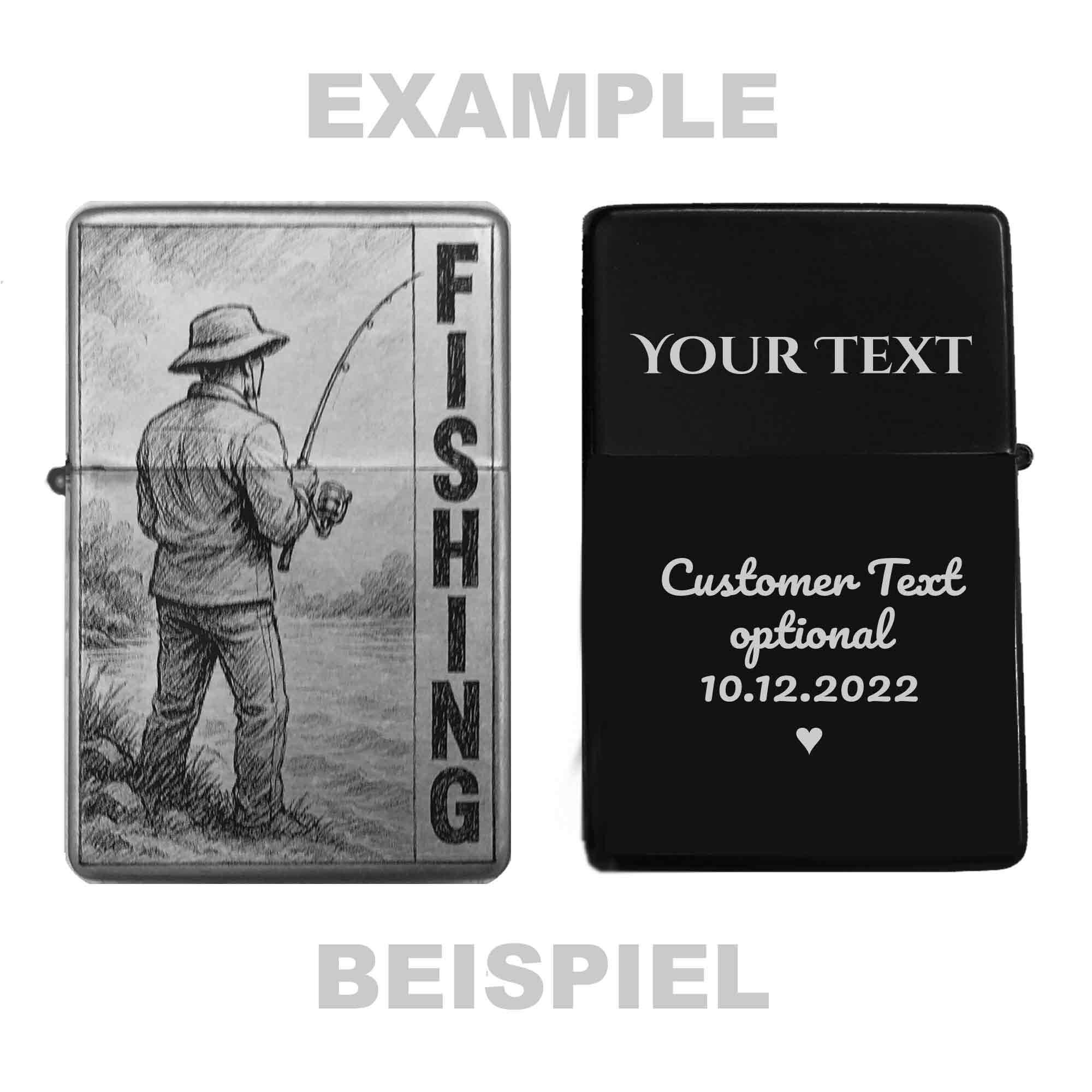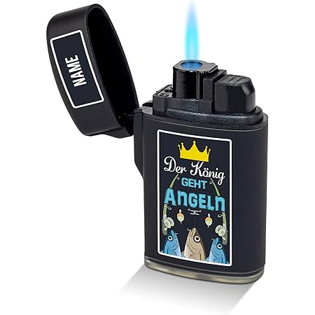 Das perfekte Geschenk für Angler! Dieses Sturmfeuerzeug mit Angel-Motiv und deinem Wunschtext ist einfach genial. Mit blauer Jet-Flamme die selbst bei Wind nicht ausgeht - praktisch fürs Angeln am See!