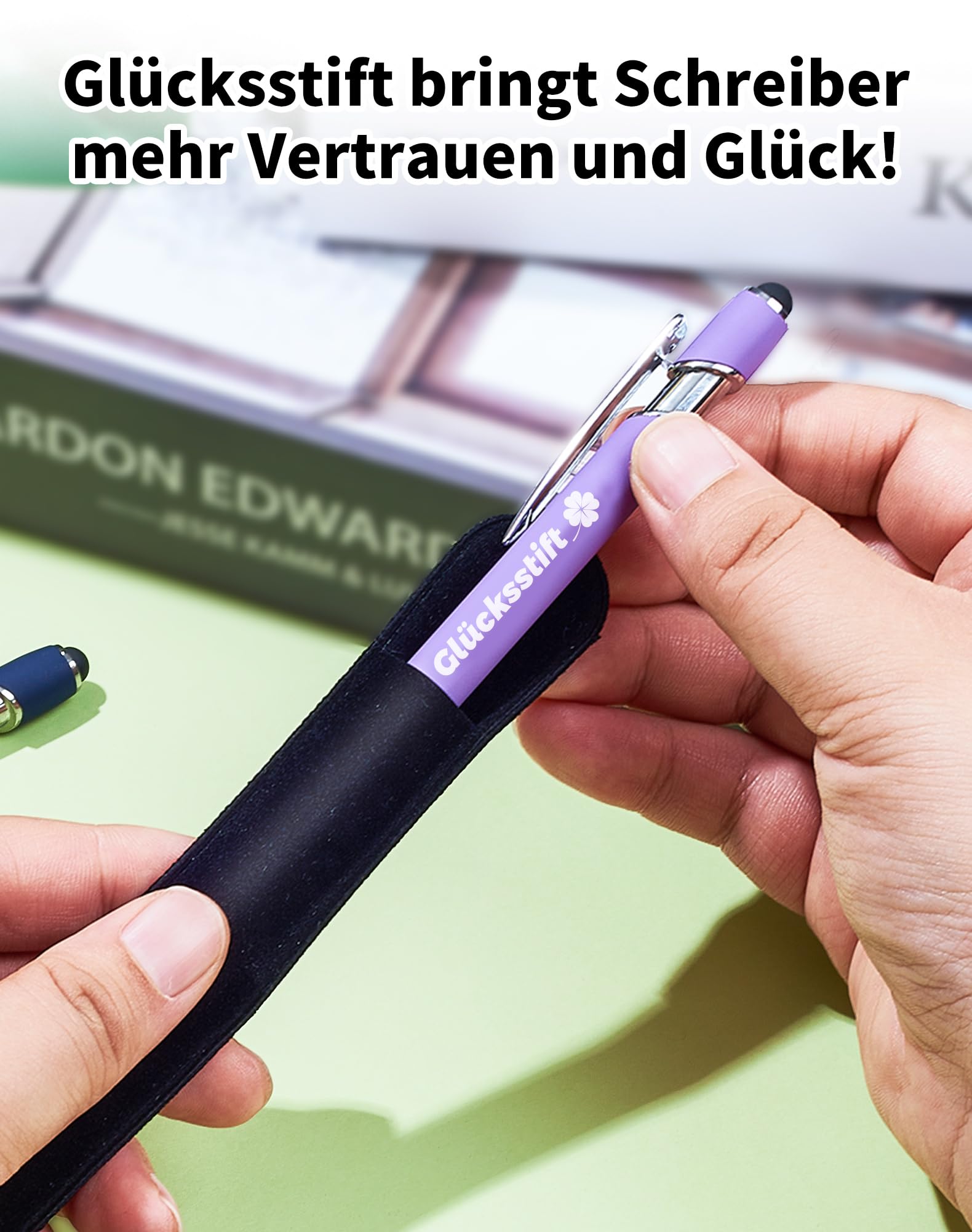 Hey du! Suchst du ein besonderes Geschenk oder einfach motivation für den Alltag? Dieses NETONDA Kugelschreiber-Set mit 4 verschiedenen Stiften und inspirierenden Sprüchen ist perfekt! Jeder Stift hat sein eigenes Design und Motivations-Spruch: 'Du schaffst das!', 'Viel Erfolg!', 'Ich bin stolz auf dich!' und 'Glückstift'. Die Metall-Gehäuse in Schwarz, Gold, Silber und Grau liegen super in der Hand und sehen richtig edel aus. Mit 1,0mm Edelstahlspitze und dokumentenechter schwarzer Tinte schreiben sie wunderbar gleitend. Der praktische Metall-Clip hält sie sicher an deinem Notizblock oder in der Tasche. Inklusive stylischer Stoffhülle für jedes Teil - perfekt zum Verschenken! Ob zur bestandenen Prüfung, zum Jobwechsel, Geburtstag oder einfach als Aufmunterung - diese Stifte bringen Freude und Motivation. Die Laser-Gravur ist super präzise und hält ewig. Ein nützliches Geschenk, das wirklich jeder gebrauchen kann. Mach dir oder anderen eine Freude - mit diesen besonderen Kugelschreibern!