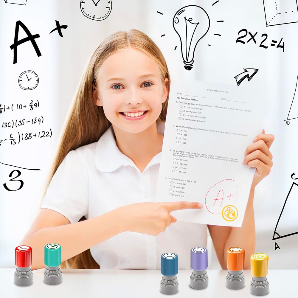 Mach deinen Schülern eine Freude mit diesen niedlichen Motivationsstempeln! Das Set enthält 6 verschiedene bunte Stempel mit Emojis und Lob-Symbolen. Perfekt für Lehrer, um Hausaufgaben schnell und positiv zu bewerten. Die Stempel färben sich automatisch ein und können über 2000 Mal verwendet werden. Mit der praktischen Aufbewahrungsbox bleiben sie immer ordentlich. Eine super Hilfe, um Zeit zu sparen und den Schülern trotzdem persönliches Feedback zu geben. Auch ein tolles Geschenk für Lehrer zum Geburtstag oder zum Schuljahresende!