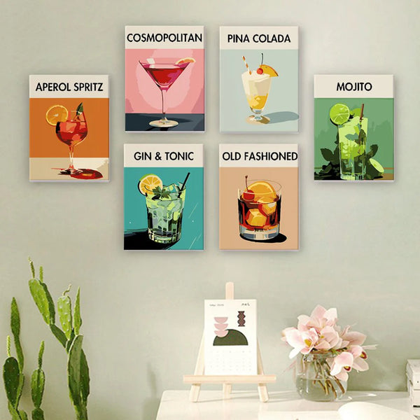 Malen Nach Zahlen Set - 6 Cocktail Motive Für Erwachsene Mit Pinseln & Acrylfarben