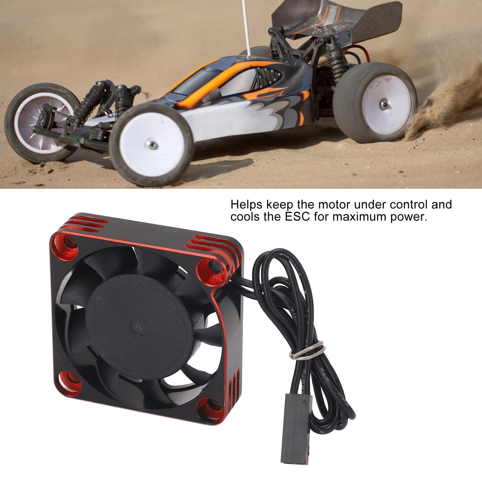 Gib deinem RC-Auto den nötigen Kühl-Kick! Dieser Lüfter mit 40x40mm Größe und satten 15000 U/min hält Motor und ESC schön kühl, auch bei längeren Einsätzen. Aus Aluminium und robustem Kunststoff gefertigt, leitet er die Wärme effizient ab und verlängert so die Lebensdauer deiner teuren Elektronik. Mit nur 23g Gewicht belastet er dein Fahrzeug kaum, aber die Leistung steigt spürbar! Kompatibel mit vielen Marken wie AXIAL, HSP, HPI und anderen. Die Arbeitsspannung von DC 5-9V passt zu den meisten Systemen. Einfach anschließen und sofort von besserer Performance profitieren - kein Überhitzen mehr bei harten Rennen oder anspruchsvollen Geländefahrten. Das rote Design sieht dazu noch richtig sportlich aus. Für alle, die das Maximum aus ihrem RC-Car herausholen wollen!