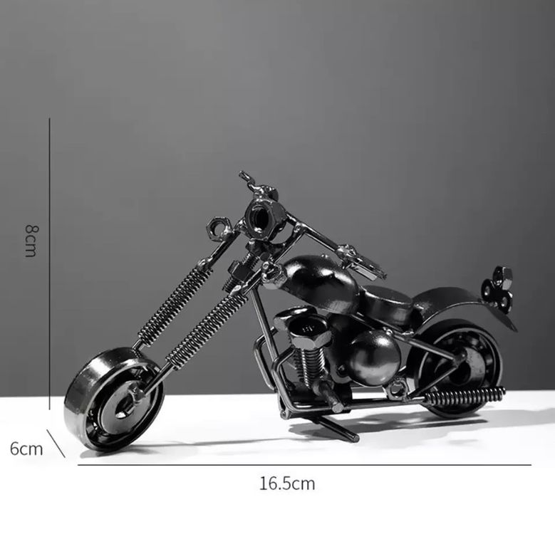 Ein absoluter Hingucker für jeden Raum! Diese handgefertigte Motorrad-Skulptur von Zoeyilan im Retro-Design fasziniert mit ihren drehbaren Rädern und antikem Finish. Aus hochwertigem Eisen gefertigt (ca. 25,5x14x7cm), ist sie robust und pflegeleicht. Jedes Detail wurde liebevoll zusammengebaut, lackiert und poliert - echte Handwerkskunst! Perfekt fürs Bücherregal, den Schreibtisch oder Wohnzimmer. Der industrielle Charme verleiht deinem Zuhause Persönlichkeit und einen Hauch Nostalgie. Ein ideales Geschenk für Motorrad-Fans, das immer an die Freiheit der offenen Straße erinnert. Kompakt genug für jede Ecke, aber auffällig genug, um Aufmerksamkeit zu erregen. Einfach hinstellen und staunen - dieses Unikat wird garantiert zum Gesprächsstoff!