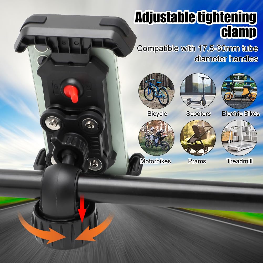 Dein Smartphone sicher auf jeder Fahrt! Diese Halterung schützt dein Handy vor Vibrationen. Mit 4 Stoßdämpfern - reduziert Erschütterungen um 90%. Passt für Lenker 22-32mm - universell für Motorräder, E-Bikes, Fahrräder. 720° verstellbar - perfekte Sicht auf Navigation. Einhand-Bedienung - auch mit Handschuhen. Für Smartphones 5,6-7,4 Zoll, auch mit dicken Hüllen. Aus Aluminiumlegierung und Edelstahl - super robust. Temperaturbeständig von -30°C bis 70°C. Nie wieder verpasste Abbiegungen!