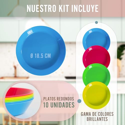 Mulaibdin 8-tlg Plastikteller Set - Bunt Mit Besteck & Dipschalen BPA-frei