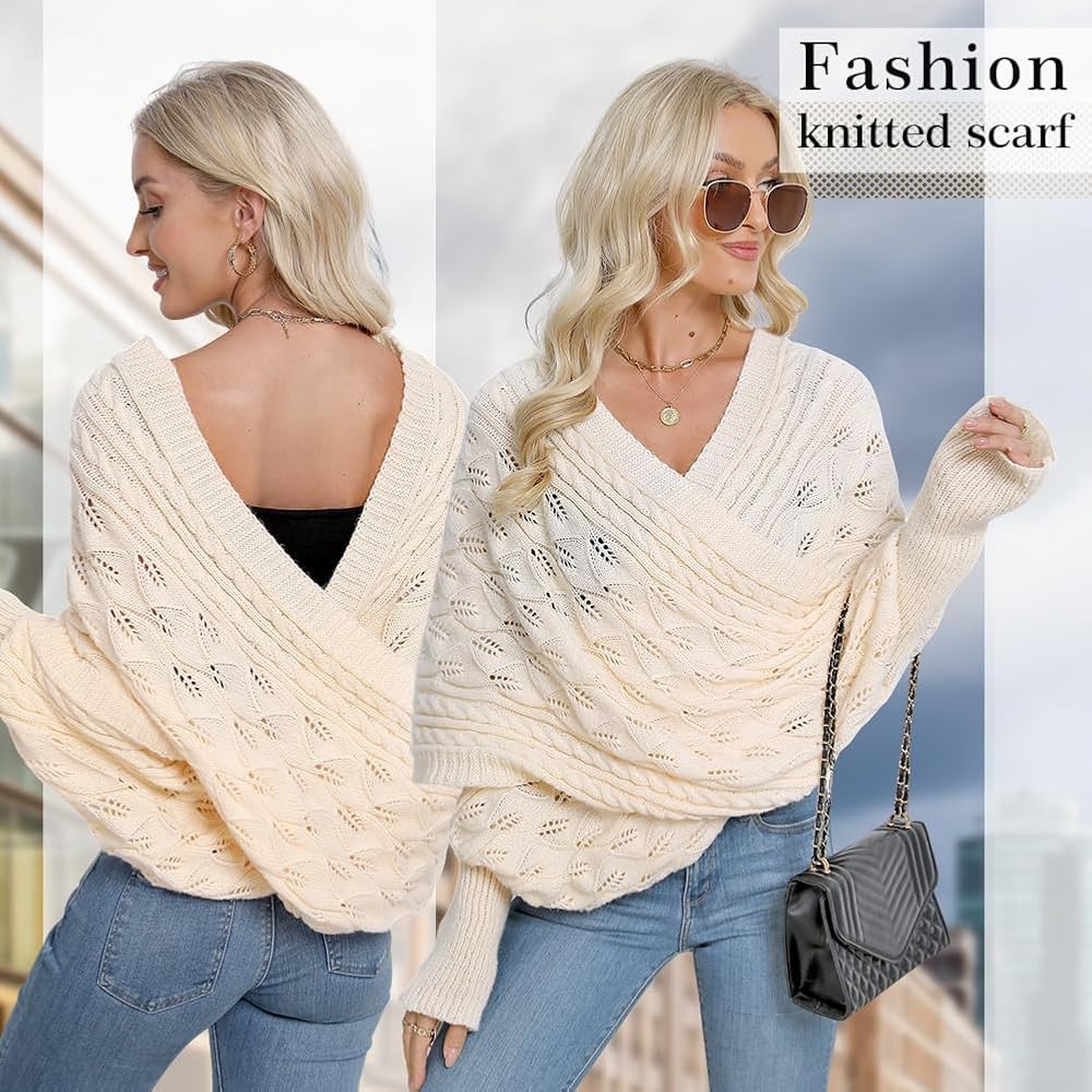 Multifunktionaler Schal Mit Ärmeln Damen - Gestricktes Cape Mit Zopfmuster