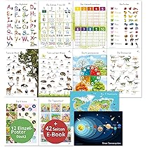 Wow, diese Multiplikations-Poster machen Mathe lernen richtig spaßig! Das Set hat 12 bunte Poster für die Zahlen 1 bis 12, jedes etwa 27x18cm groß. Die sind aus richtig dickem Karton und mit wasserfester Folie laminiert - also super robust für den täglichen Einsatz in der Schule. Selbst von der letzten Reihe kann man alles gut lesen. Die Farben sind total ansprechend gemischt - Pastelltöne und kräftige Farben wechseln sich ab. Perfekt fürs Klassenzimmer, Kinderzimmer oder Homeschooling. Jedes Poster zeigt in der Mitte die Hauptzahl und drumherum die komplette Multiplikationstabelle. So lernen Kinder spielerisch das Einmaleins und das Zählen. Die Oberfläche lässt sich easy mit einem feuchten Tuch abwischen, falls mal was daneben geht. Mit dabei ist sogar Spenderkleber fürs einfache Aufhängen. Ob in der Grundschule, Vorschule oder Kita - diese Poster verwandeln jeden Raum in eine tolle Lernumgebung. Deine Kids werden Mathe plötzlich viel cooler finden! Die Poster kann man zusammen als Set oder einzeln aufhängen, ganz wie man möchte. Einfach praktisch und pädagogisch wertvoll zugleich.