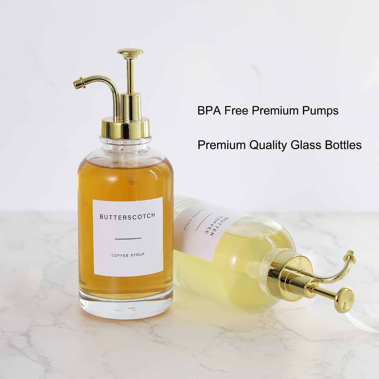 Mumisuto Kaffeesirup-Spender Set - 2x 500ml Glasflaschen Mit Pumpen & Etiketten