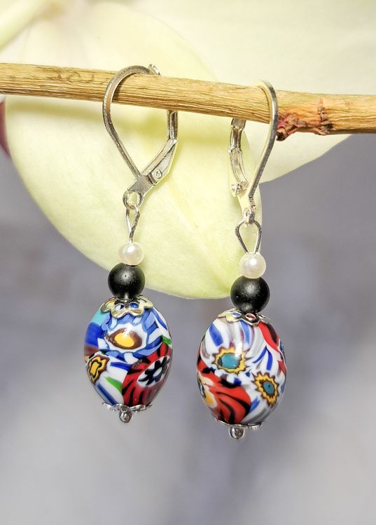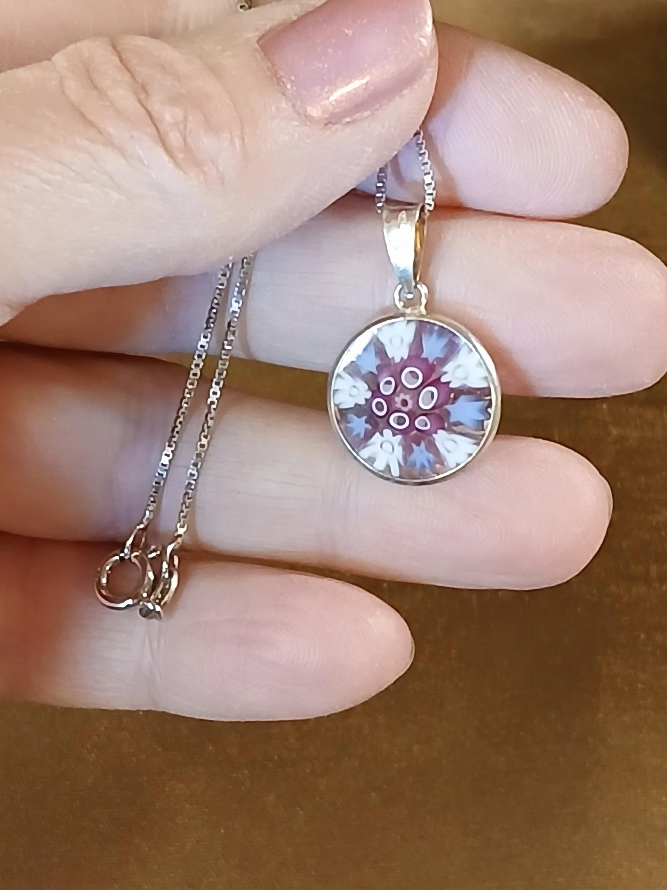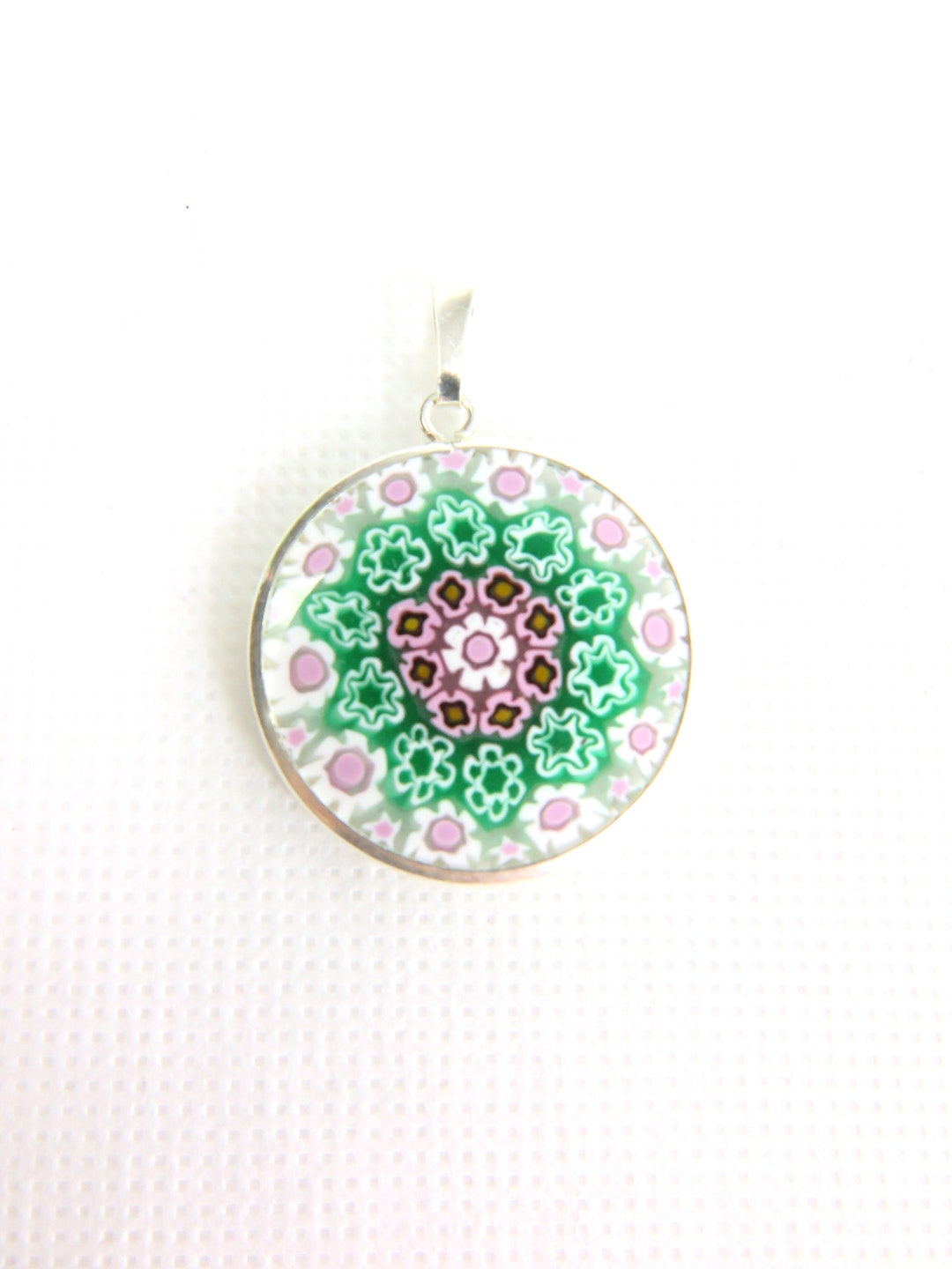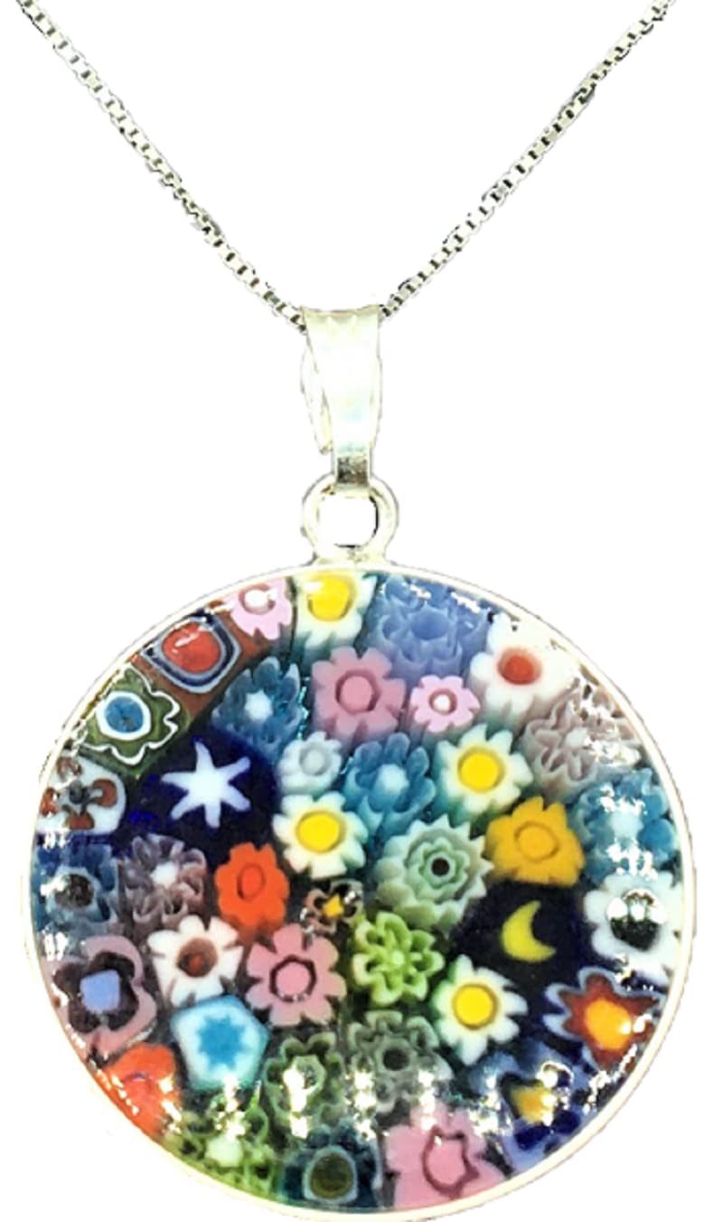 Murrina Millefiori Anhänger 36mm - Muranoglas Mit 925er Silber