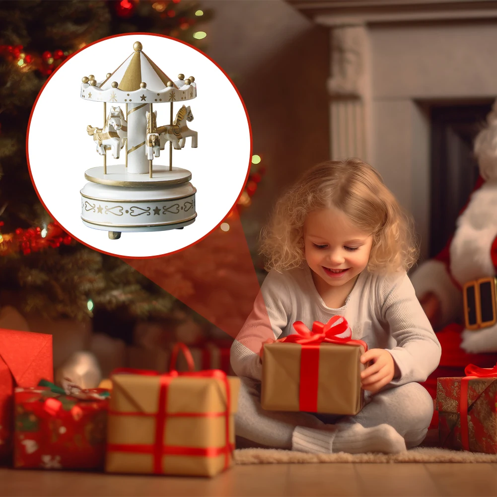 Dieses süße Musikkarussell bringt Kinderaugen zum Leuchten! Mit 16 cm Höhe ist es perfekt für den Schreibtisch, das Regal oder als Tischdekoration. Die Mischung aus Holz und Kunststoff gibt ihm einen hochwertigen Look und Stabilität.\\n\\nEinfach die Feder drei- bis viermal aufziehen und schon dreht sich das Karussell und spielt eine wunderschöne Melodie. Die rutschfeste Unterseite sorgt dafür, dass es sicher steht. Unter dem schirmförmigen Dach drehen sich die Pferdchen - richtig niedlich gemacht!\\n\\nPerfekt als Geschenk für Kinder, aber auch für Erwachsene die sich an Kindheitserinnerungen erfreuen wollen. Besonders in der Weihnachtszeit sorgt es für gemütliche Atmosphäre. In verschiedenen Farben erhältlich - such dir deine Lieblingsfarbe aus! Einfach bezaubernd.