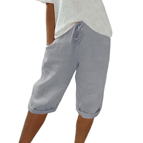 Damen Musselin Hose - Leichte Leinenhose Sommer Kurze Mit Gummizug