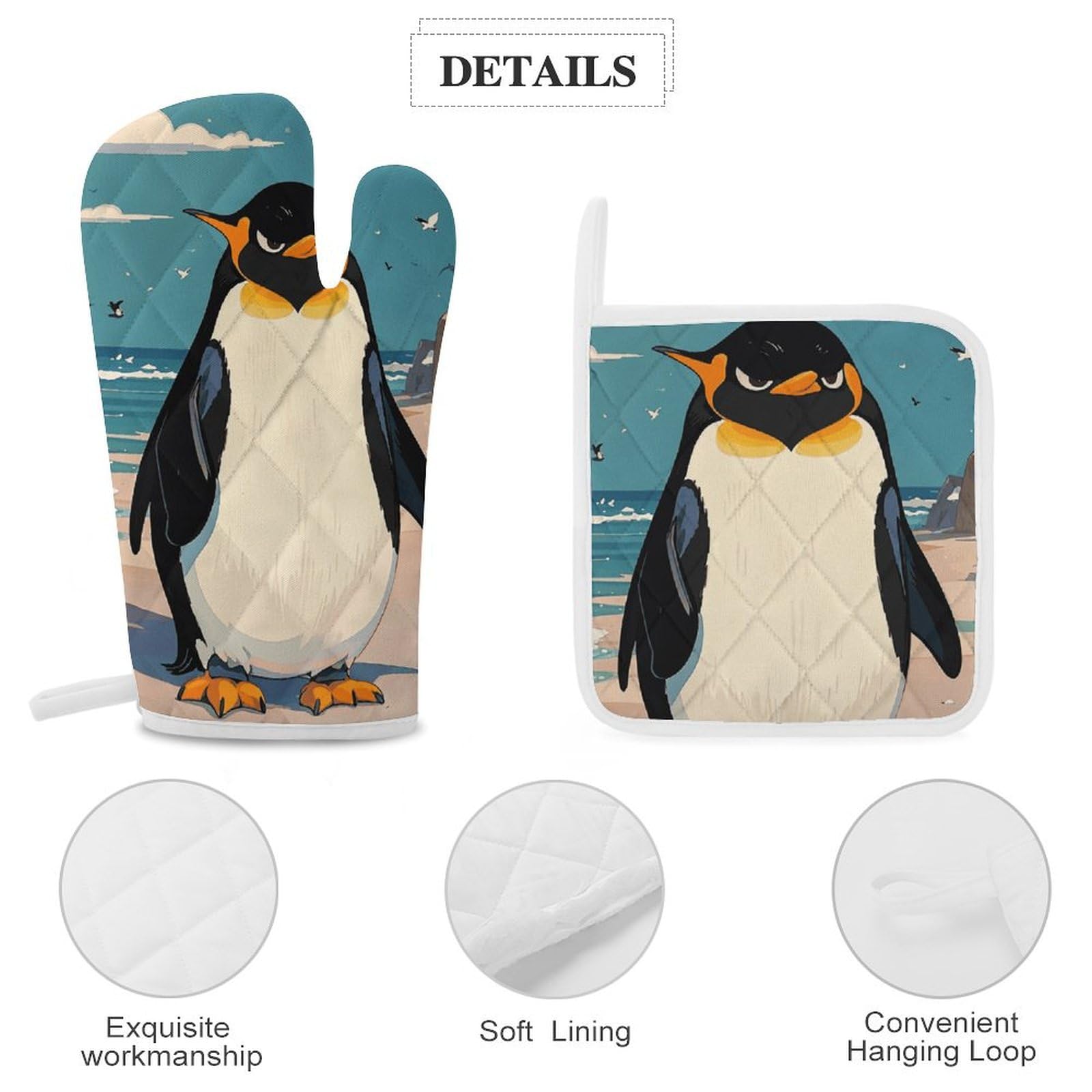 VANANI Ofenhandschuhe Mit Pinguin-Muster - Hitzebeständig & Wasserdicht
