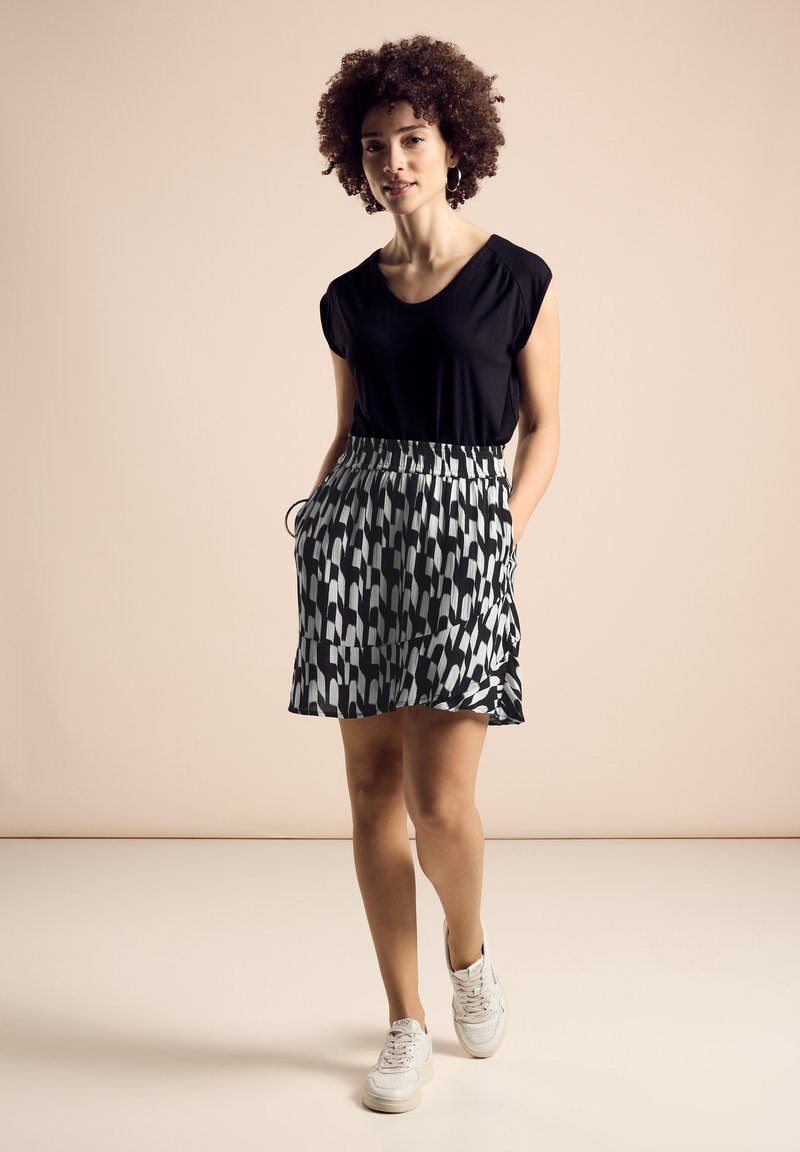 Suchst du einen luftigen Sommerrock? Dieser Volant-Rock von CECIL ist genau das Richtige! Aus 100% weicher Viskose, super bequem und fließend im Fall. Der elastische Bund mit Tunnelzug passt sich perfekt deiner Figur an. Als Maxi-Rock geht er bis zum Knöchel - richtig feminin und elegant. Das grafische Muster macht jeden Look interessant. Perfekt für warme Tage, Urlaub oder sommerliche Anlässe. Ob mit T-Shirt, Bluse oder Tanktop - dieser Rock ist vielseitig kombinierbar. Einfach anziehen und sich wohlfühlen! CECIL Qualität, auf die du dich verlassen kannst. Dein neuer Lieblingsrock für den Sommer!