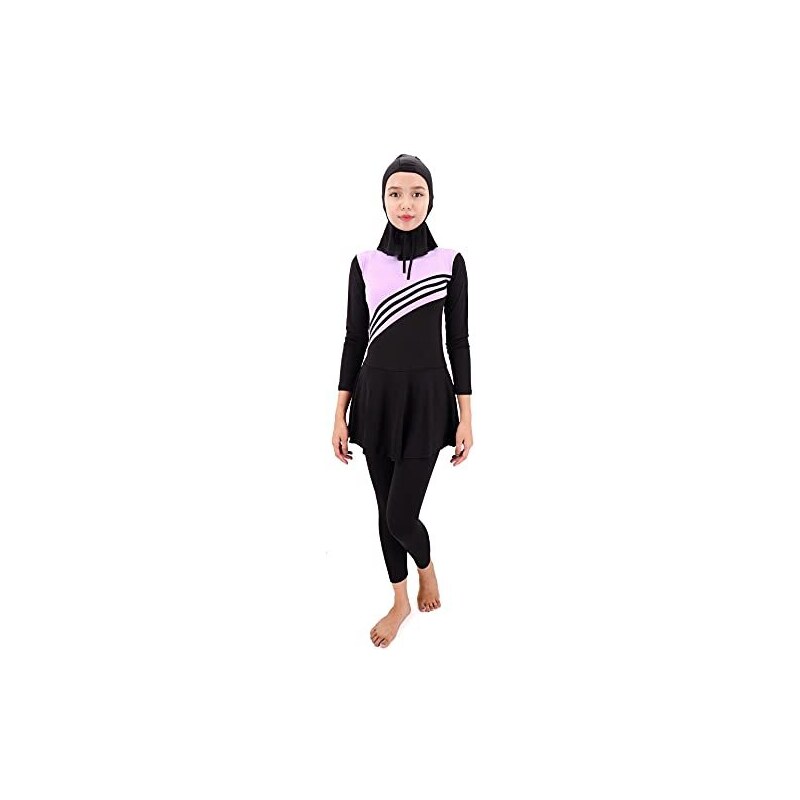 Hey, dieser Burkini von Musuly ist ja mal richtig schön! In schwarz-lila - eine tolle Kombination, die elegant aussieht. Perfekt für muslimische Frauen, die auch beim Schwimmen ihre Werte leben möchten. Aus elastischem Synthetikstoff, der sich super an den Körper anpasst. Die Größen stimmen genau - kein lästiges Anprobieren nötig. Du kannst ihn mit oder ohne Kapuze tragen, je nachdem was dir lieber ist. Die Fotos zeigen genau das, was du bekommst - keine bösen Überraschungen! Super für den Strand, Schwimmbad oder Urlaub. Damit fühlst du dich wohl und sicher im Wasser. Einfach anziehen und ins kühle Nass springen - mehr Komfort geht nicht! Perfekt für alle, die modisch und trotzdem bedeckt schwimmen gehen wollen. Ein echter Game-Changer für muslimische Badebekleidung!