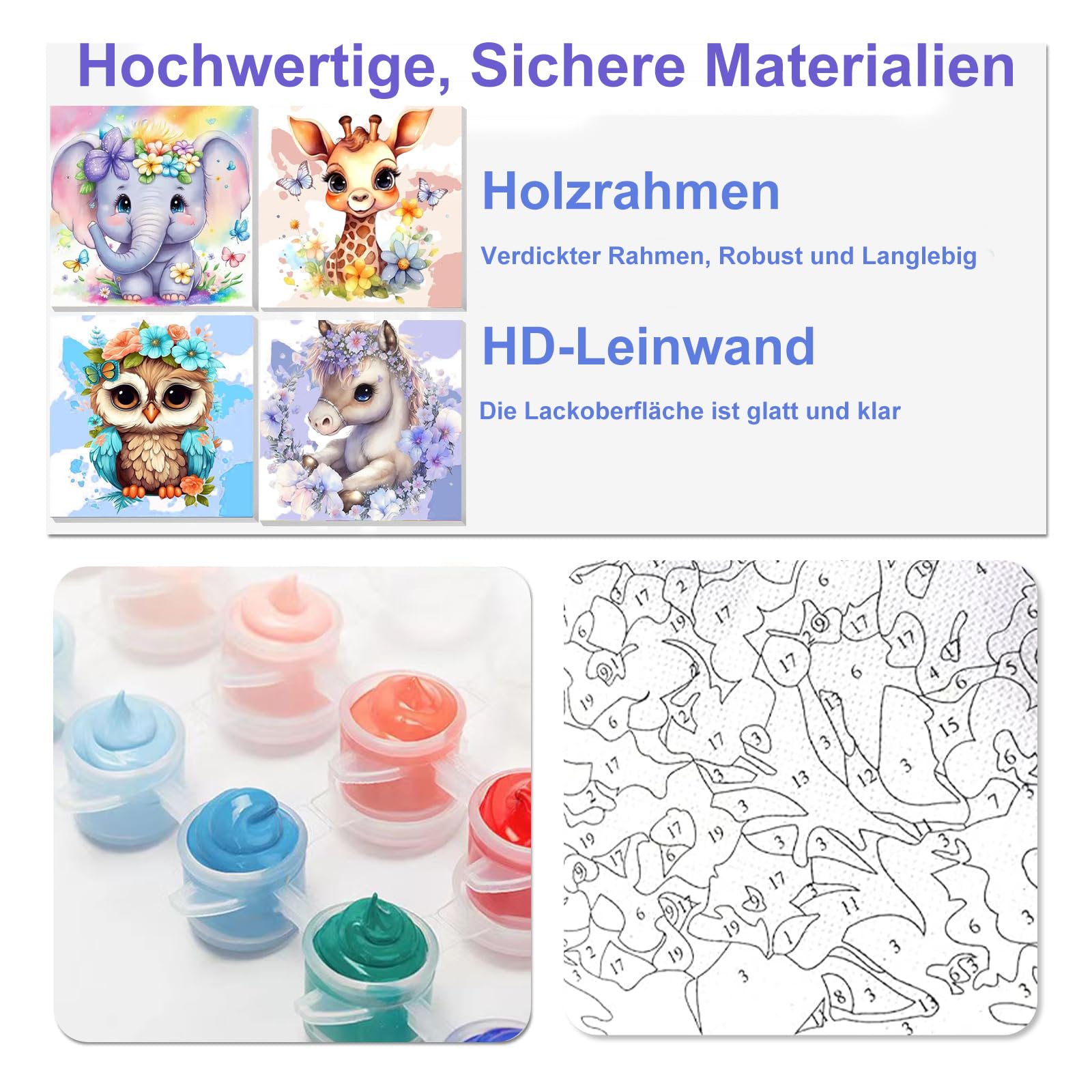 Muyohix Malen Nach Zahlen Tiere Set - 4 Motive Für Kinder Ab 5 Jahren