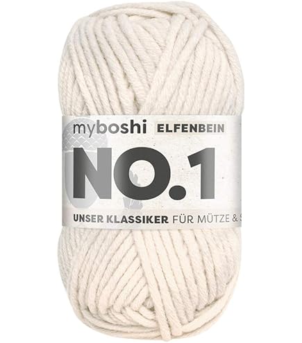 Perfektes Garn für deine Strick- und Häkelprojekte! Die myboshi No.1 Wolle besteht aus 30% Merinowolle und 70% Polyacryl - weich, warm und super pflegeleicht. Jedes Knäuel hat 55m Lauflänge bei 50g Gewicht. Ideal für Nadelstärke 6-7mm. Die Wolle ist waschbar bei 30°C, filzt nicht und fusselt kaum. In diesem Pack bekommst du 6 Knäuel in schönem Elfenbein/Beige plus ein kostenloses myboshi Label in Lederoptik. Perfekt für Mützen, Schals, Decken oder andere Accessoires. Die Wolle ist zertifiziert mulesing-frei und damit tierfreundlich. Ob du Anfänger oder Profi bist - mit diesem Garn gelingen dir garantiert tolle Unikate. Für einen Schal brauchst du etwa 6-8 Knäuel. Mach dir was Schönes und genieße das entspannende Stricken oder Häkeln mit diesem hochwertigen Garn!