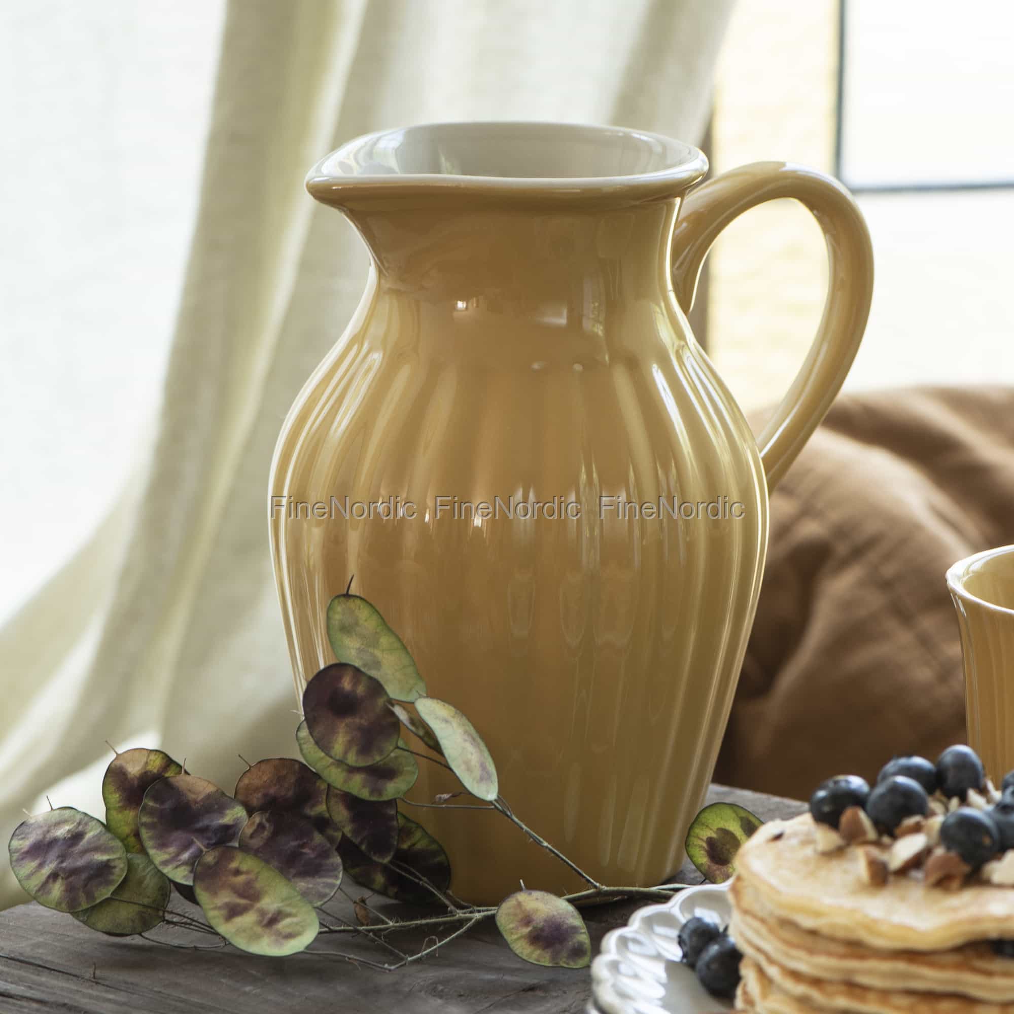 Diese bezaubernde Mynte Strawberry Kanne von IB Laursen ist ein absoluter Blickfang in deiner Küche! In einem wunderschönen Rot gehalten, passt sie perfekt zum beliebten Mynte Steinzeug-Sortiment.\n\nMit 1,7 Liter Fassungsvermögen ist sie ideal zum Servieren von Wasser, Saft, Eistee oder sogar Cocktails. Die Maße: 13 cm breit, 20 cm hoch und 18 cm lang - also schön kompakt aber dennoch geräumig.\n\nHergestellt aus hochwertigem Steingut, fühlt sich robust und wertig an. Das Gewicht von 0,96 kg gibt ihr einen stabilen Stand - kein Umkippen beim Einschenken!\n\nDas Design ist einfach zeitlos schön - dieser Retro-Charme combined mit moderner Funktionalität. Perfekt für gemütliche Kaffeerunden, Familienfeiern oder einfach als dekoratives Element in deiner Küche.\n\nMynte Steinzeug ist bekannt für seine Qualität und sein charmantes Design. Die Kanne ist Teil einer ganzen Serie - du kannst sie also wunderbar mit anderen Mynte-Produkten kombinieren.\n\nEgal ob für den täglichen Gebrauch oder besondere Anlässe - diese Kanne macht jedes Getränk zum besonderen Erlebnis. Einfach schön, praktisch und voller Charakter!