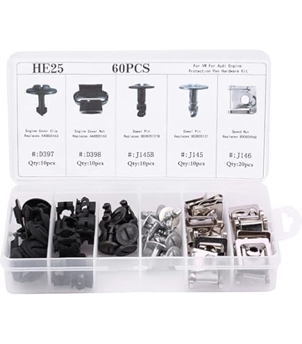 Perfektes Befestigungsset für den Unterfahrschutz deines Mercedes! Enthält 24 Clips und Schrauben in Silber/Schwarz. Passt für Mercedes W203, W204 und W211 Modelle. Aus robustem Metall und Kunststoff für dauerhaften Halt. Einfache Montage - einfach die alten Teile ersetzen. Bitte vor dem Kauf die Bilder mit deinen vorhandenen Teilen vergleichen. Ein hochwertiges Ersatzteil-Set, das genau passt. Kein Original, aber gleiche Qualität und Funktion. Mach deinen Unterfahrschutz wieder fest und sicher! Ein Muss für jede Mercedes-Reparatur.
