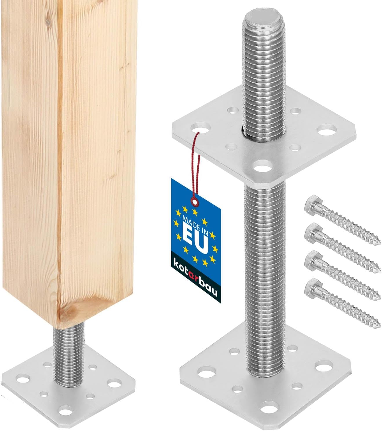 NAJDER Pfostenträger 80x80x250mm - Höhenverstellbar Verzinkt M24 Gewinde