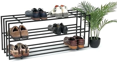Endlich Ordnung im Flur! Dieses praktische Schuhregal von IDIMEX bringt System in deine Schuhsammlung. Mit drei geräumigen Ablagen aus stabilem Metall findest du immer den passenden Schuh. Die cremefarbene Lackierung sieht nicht nur schick aus, sondern ist auch super pflegeleicht. Mit den Maßen 80x45x29cm (BxHxT) passt das Regal perfekt in schmale Flure und kleine Dielen. Die 12mm starken Metallrohre halten auch bei täglicher Nutzung bombenfest. Jede Ablage bietet 76x18x29cm Stauraum - ideal für Alltagsschuhe. Der 6,5cm Abstand zum Boden gibt dir sogar noch extra Platz. Einfach aufbauen und sofort nutzen - deine Schuhe werden es dir danken!